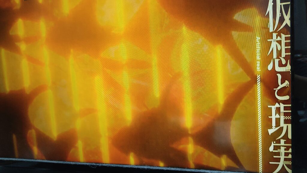 テレビ放送の録画したものを見返したら、最初の0.2秒くらいの魚が飛んでるシーンだけ「仮想と現実」という、違うタイトルが表示されていました。