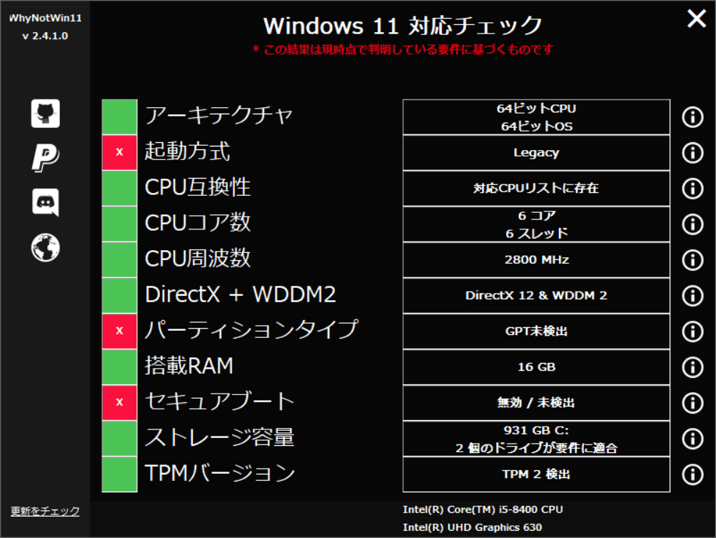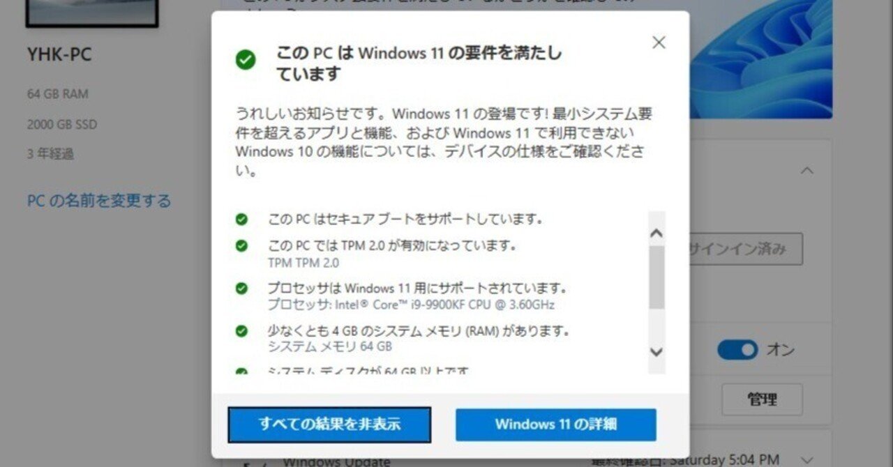 最近Win11にアップデート出来そうなことを色々やっていて、最後の壁になったのが